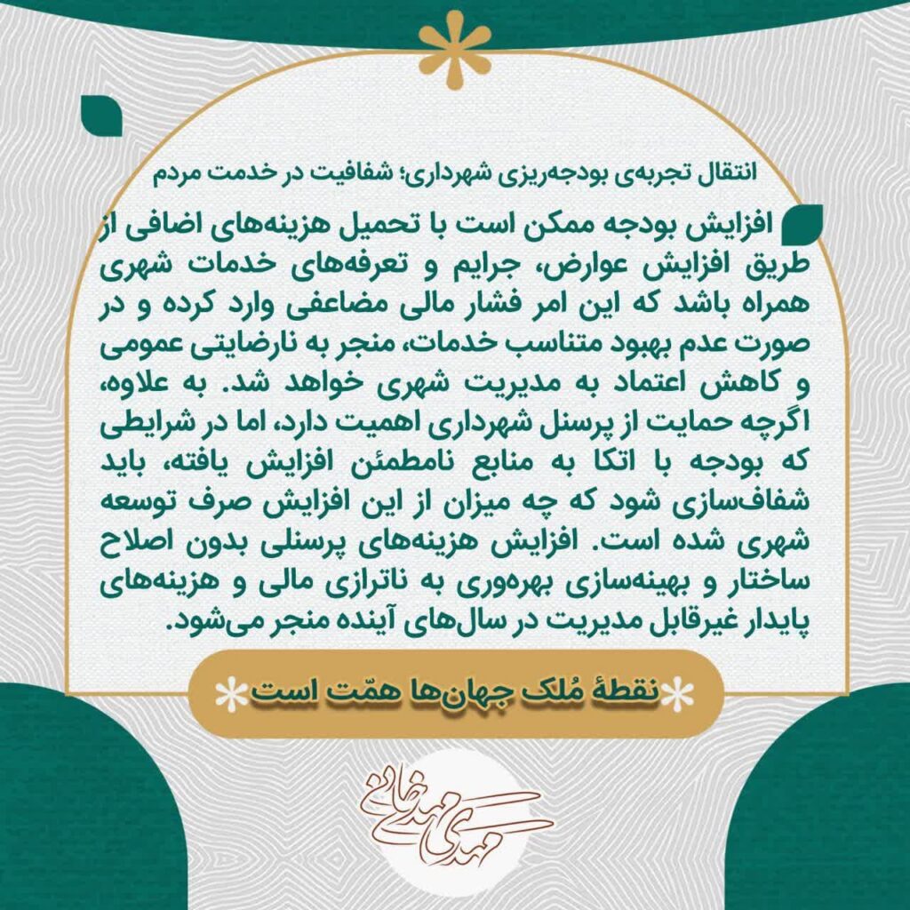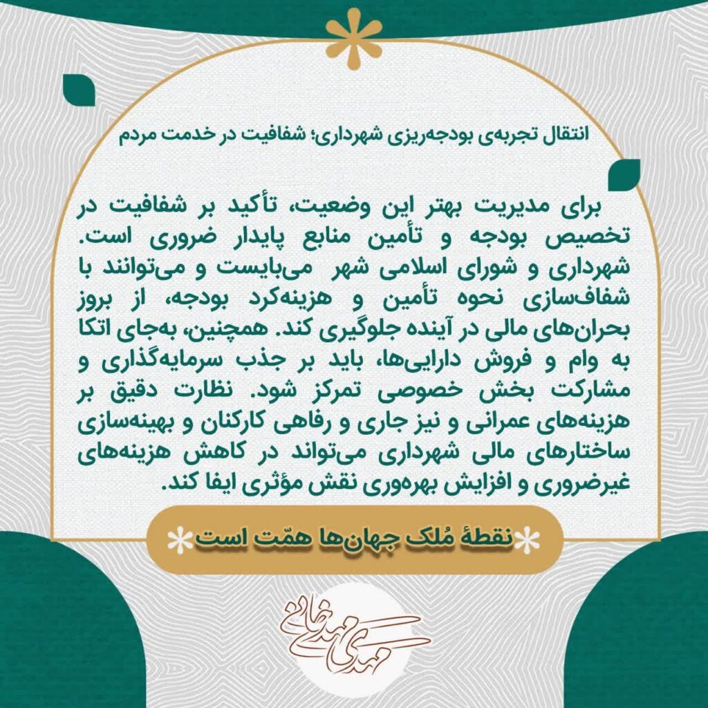 انتقال تجربه بودجه ریزی شهرداری؛ شفافیت در خدمت مردم